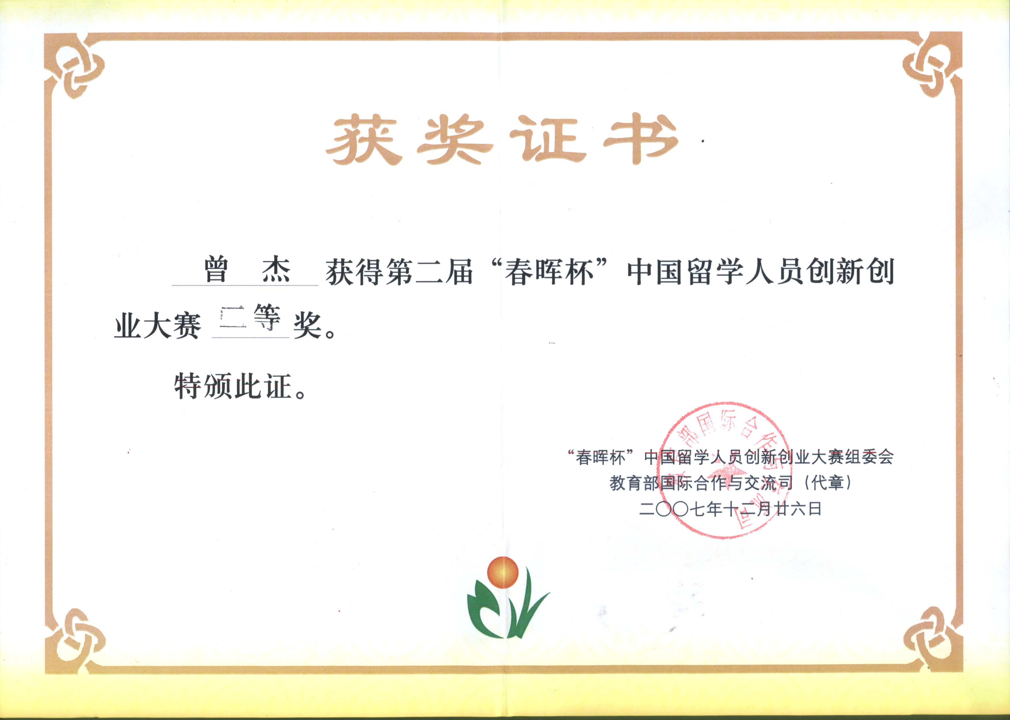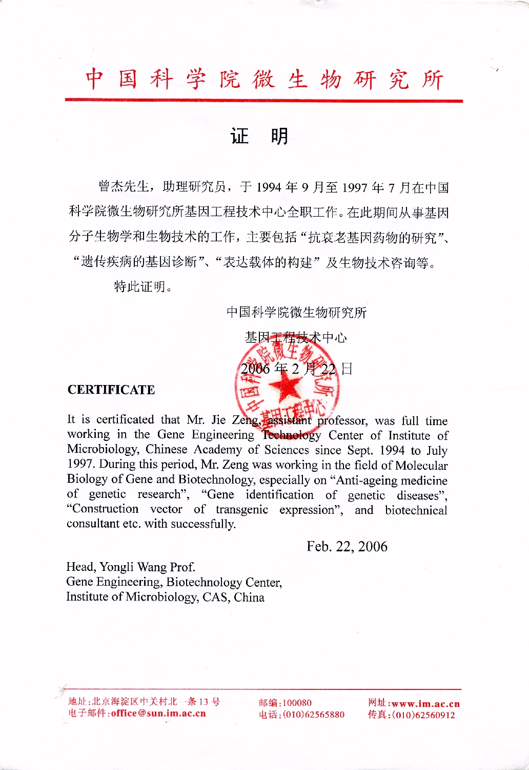 9. Zeng J., Drug Discovery, Gene Isolation and Transgenic Systems Biotechnology, Returned Chinese Scholars Pioneering£¨awarded£©, 2007 Oct.; (10):49.